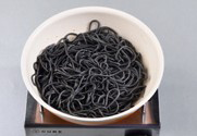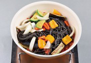 3. 먹물파스타면은 삶은 뒤 오일에 버무려주고 볶아준다.