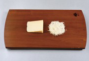 6. 치즈를 곱게 다져주고 접시에 파스타면을 올린 뒤, 토마토스프와 치즈가루를 뿌려 완성 한다.