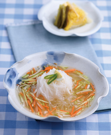 실곤약 200g, 물김치국물 200g, 오이 25g, 달걀 1개(60g)