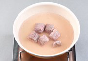 1. 소고기는 사방 2cm 정도의 크기로 잘라서 물에서 80% 정도까지 익혀준 후 냉수에 깨끗하게 세척해 준다.