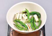 2. 대파는 흰 부분만 잘라 구워주고, 꽈리고추도 함께 구워준다.