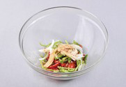 토마토겉절이 : 토마토 80g, 미나리 20g, 맛간장 5g, 청고추 15g, 홍고추 15g