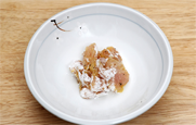 2. 달걀을 넣어 섞은 닭고기 살에 녹말 가루를 넣어 골고루 묻힌다.