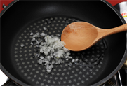 5. 양파는 입자있게 다져 팬에 기름을 넣고 은근히 볶아 양파 향을 낸다.