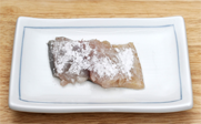 2. 손질을 한 삼치에 녹말가루를 입혀 팬에 기름을 두르고 구워 접시에 담아 놓는다.