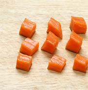 2. 연어는 사각지게 썰어 준비한다.