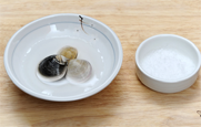 1. 모시조개는 물에 소금을 넣고, 담그어 해감을 한다.