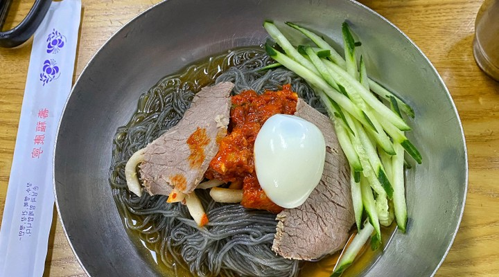 이곳은 회 비빔냉면(12,000원), 고기비빔냉면(12,000원), 섞임냉면(12,000원), 물냉면(12,000원), 온면(12,000원) 등의 메뉴를 제공하고 있습니다.