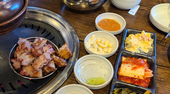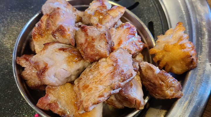 이곳은 통목살 (150g)(15,000원), 통삼겹살 (150g)(15,000원), 항정살 (150g)(18,000원), 육전국밥(10,000원), 매운갈비찜(10,000원) 등의 메뉴를 제공하고 있습니다.