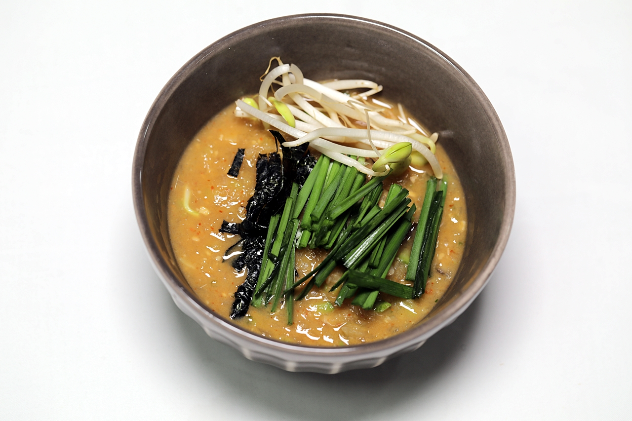 7. 보리밥에 부추, 콩나물, 김을 얹어 강된장과 함께 낸다. (d)