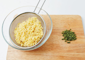 4. 라면은 삶아 찬물에 헹궈 건지고, 쪽파는 송송 썬다.