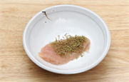 1. 닭고기살에 로즈마리를 뿌려 약 3시간 이상 숙성을 시킨다.