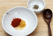 4. 마늘을 다지고, 고춧가루와 설탕, 식초, 레몬즙을 넣어 소스를 만든다.