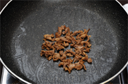 2. 소고기는 채를 썰어 마늘, 간장, 설탕에 양념을 하고 팬에 볶아서 식힌다.