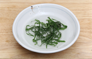 3. 깻잎은 반으로 접어 채를 썰어 물에 잠시 담그어 놓는다.