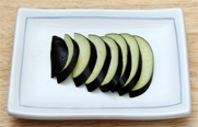 2. 가지는 씨가 적은 것으로 골라 반으로 갈라 어슷썰어 놓는다.