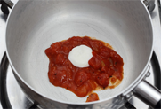 4. 냄비에 토마토소스를 끓이다가 생크림을 넣고 살짝 한 번 더 끓여놓는다.