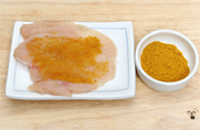 2. 포뜬 닭가슴살 위에 카레가루를 솔솔 뿌려 숙성을 시킨다.