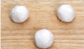 5. 익반죽을 지름 3cm 크기로 동그랗게 만들고 안에 소를 넣어 다시 동그랗게 만든다