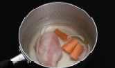 1. 냄비에 마늘과 대파를 넣고 끓이다가 닭다리를 넣고 삶는다