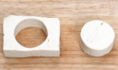 2. 두부는 원형틀을 이용해서 토마토와 같은 크기로 만들고 소금을 살짝 뿌린 뒤 물기를 제거한다.