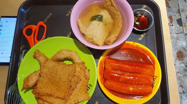 이곳은 A세트(10,500원), B세트(10,500원), 떡볶이 (3개)(3,200원), 오징어튀김 (3개)(3,700원), 오뎅 (3개)(3,000원) 등의 메뉴를 제공하고 있습니다.