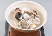 3. 만들어진 국물에 모시조개를 넣고 청주를 부어서 국물을 만들어준다.
