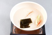 국물 : 다시마물 400g, 모시조개 200g, 볶은소금 1g, 청주 15g