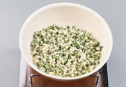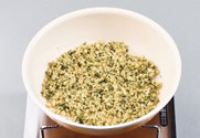 3. 두부는 물기제거를 한 후 함초, 깻잎, 다진양파, 를 넣어 치대어 두부볶음을 만들어준다.