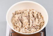 2. 바지락살은 따로 떼어내어 다진소고기와 다시 다져서 양념해 볶아준다.