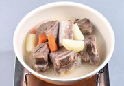 1. 갈비는 핏물을 빼주고 뜨거운 물에 80% 이상 데쳐준 뒤 갈비와 감자를 물을 자작하게 넣고 청주, 생강청을 넣고 푹 삶아준다.