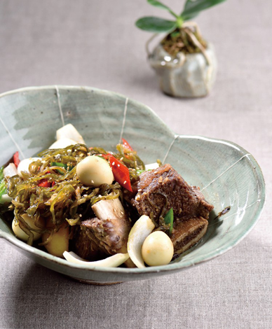6. 마지막에 미역줄기를 넣고 볶아주는 형식으로 갈비찜을 완성한다.