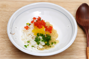 5. 밥과 감자가 잘 섞어지면, 다시 다져진 파프리카를 넣고 섞어준다.