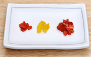 3. 파프리카는 속을 파내고 작은 사각으로 자르고, 토마토는 씨를 제거하고 네모지게 잘라 준비해 놓는다.