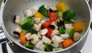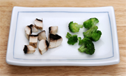 2. 브로컬리는 살짝 데쳐 썰고, 양송이 버섯은 껍질을 벗겨 두툼하게 썰어 준비한다.