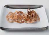 5. 연근은 모양대로 얇게 썰어 기름에 튀겨 연근칩을 만든다.