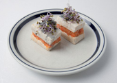6. 완두콩드레싱과 새싹채소를 올려 마무리한다.
