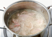 1. 돼지고기는 핏물을 제거하고 된장육수에 살짝 데친다.