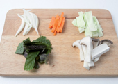 2. 양파, 당근은 채 썰고, 양배추와 깻잎, 버섯은 한입 크기로 썬다.