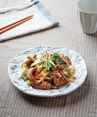 재료 콩고기(150g), 양파(20g), 당근(5g), 양배추(30g), 깻잎(10g)
