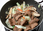 6. 양배추가 익으면 먹기 좋게 손질한 버섯을 넣고 살짝 볶아 마무리한다.