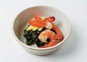 재료 대하(4마리), 화이트와인(15g), 시금치(50g), 유자청(40g)