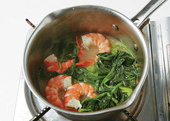 5. 대하가 익어갈 때쯤 시금치를 넣고 1분간 더 조린다.