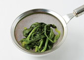 3. 시금치를 손질한 후 끓는 물에 살짝 데친다.