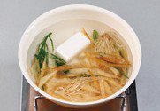 1. 두부는 사방 1cm로 잘라주고, 무는 반은 나박썰기 하고 반은 국물을 낸다.