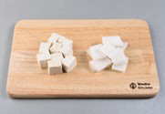 2. 두부는 사방 1cm로 잘라주고, 무는 반은 나박썰기 하고 반은 국물을 낸다.