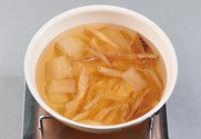 4. 황태, 대파뿌리, 함초, 무를 넣고 국물을 만든다.