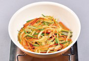 3. 양파, 청고추, 홍고추, 당근은 채 썰어 함께 볶아준다.
