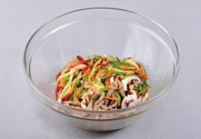4. 볶아 놓은 채소와 고기, 해산물은 양념장에 버무린다.