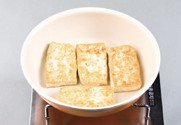 1. 두부는 1cm 두께로 잘라 볶은소금을 뿌려 수분을 제거한다.